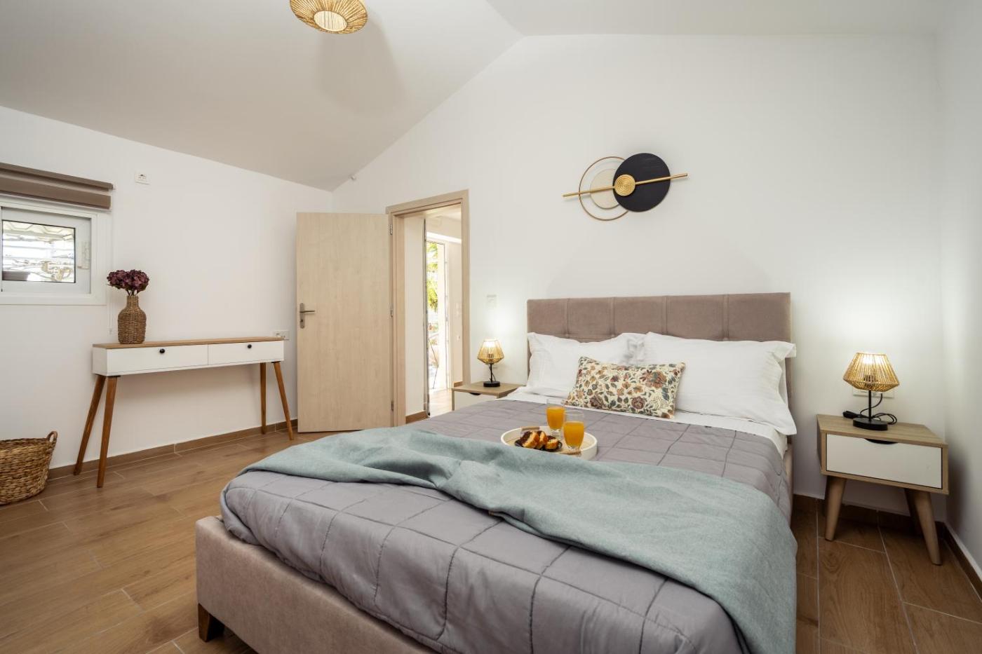One-Bedroom Apartment. Featuring a private entrance, this air-conditioned apartment is comprised of 1 living room, 1 separate bedroom and 1 bathroom with a shower and a hairdryer. Guests will find a stovetop, a refrigerator, an oven and a microwave in the fully equipped kitchen. The apartment also has a barbecue. Among the room amenities are a washing machine, a tea and coffee maker, a dining area as well as outdoor furniture and garden views. The unit offers 2 beds.